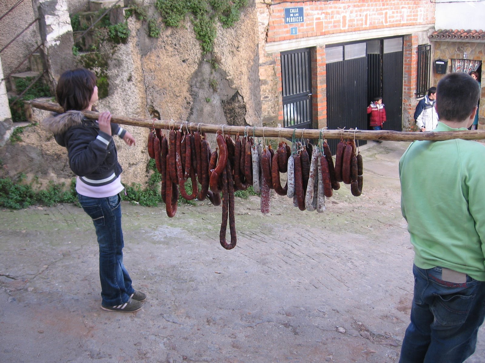El día 25 del día de Navidad a las 9:00 de la mañana los quintos y quintas se reúnen en la carretera para ir a recoger los chorizos que se repartirán con las migas el día de Noche Vieja, se va a todas las casas del pueblo.